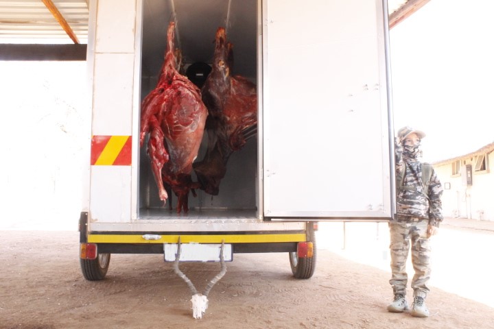 After 3 days of bliss, it was time to get ourselves ready for the trip home. The carcass bag was given a quick rinse to rid of any blood which had dripped and the meat was laid back in the bag and sealed. We did need to pack some luggage in the trailer and once we had done so, it was sealed and left to drop to the optimum temperature. As we had done a few days prior, when we were ready, we unplugged and hit the road. Once back in Johannesburg, we went to our processor, dropped off the meat and headed back home.